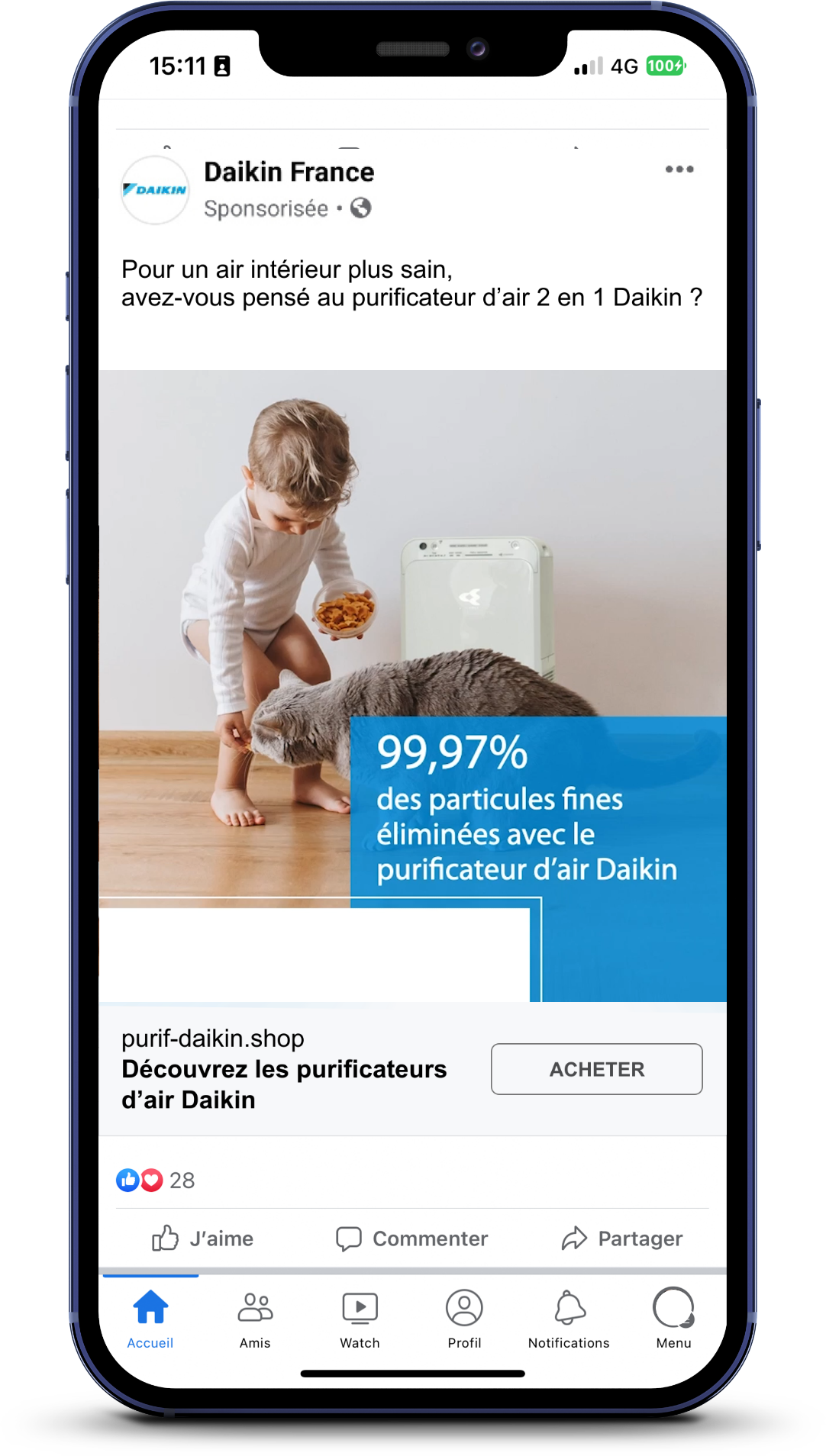 Afin de soutenir le lancement de leurs solutions de purificateurs d’air, Daikin a fait appel à Manitoba pour la conception et la création de sa campagne sur les réseaux sociaux, avec pour objectifs notoriété et génération de ventes.